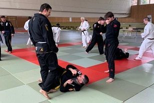 Am Samstag den 13.05.2023, trafen sich 15 Teilnehmer aus dem Jiu-Jitsu, Hapkido und Gongkwon Yusul zum zweiten Landestechniklehrgang in Bad Kreuznach. Die Themen waren Tritttechniken und Verteidigung in und aus der Bodenlage. Die Referenten Michael Schmitt 5.Dan Jiu-Jitsu und Jens Schimmel 5.Dan Hapkido boten den Teilnehmern ein abwechslungsreiches Programm an. In der ersten Stunde übernahm Jens das spezifische Aufwärmen um danach Übungsformen für Tritttechniken zu zeigen. In der zweiten Stunde zeigte Michael Bewegungsformen um sich am Boden effektiv zu bewegen. Danach mussten sich die Teilnehmer gegen Fußtritte von zwei Angreifern am Boden verteidigen. Anschließend übernahm Jens die dritte Stunde. Er zeigte Fußtritte in der Selbstverteidigung. Den Abschluss übernahm wieder Michael, es wurden verschiedene Würge und Hebeltechniken am Boden trainiert, wobei die Teilnehmer nochmals richtig gefordert wurden. Durch den ständigen Partnerwechsel, konnten auch die Sportler aus den unterschiedlichen Kampfsportarten miteinander trainieren. Es gab dabei keinerlei Berührungsängste und alle Teilnehmer haben bis zum Schluss durchgehalten.